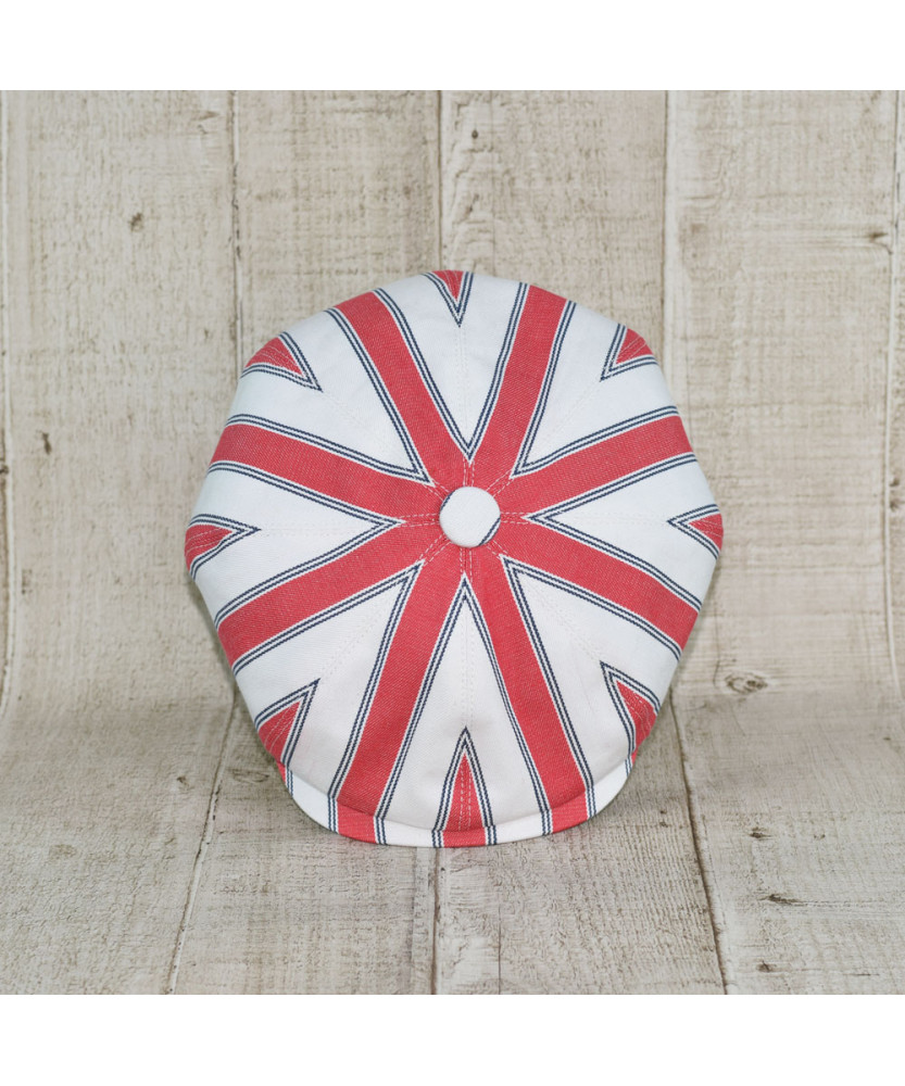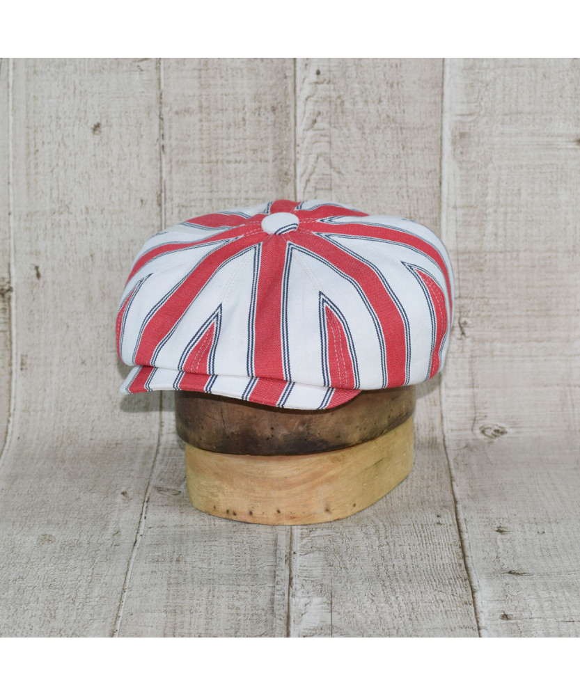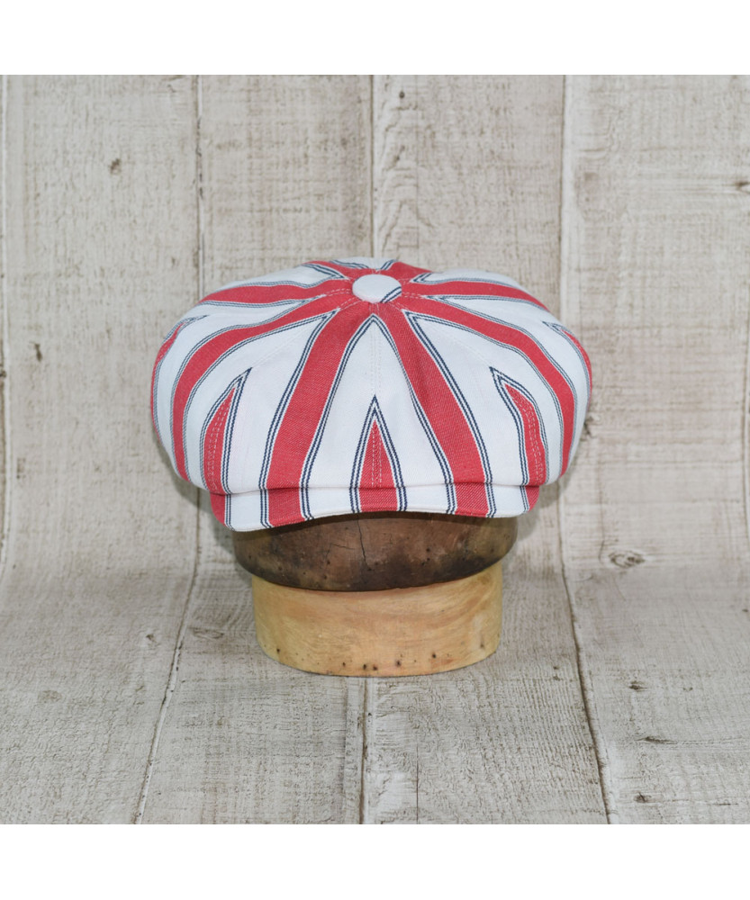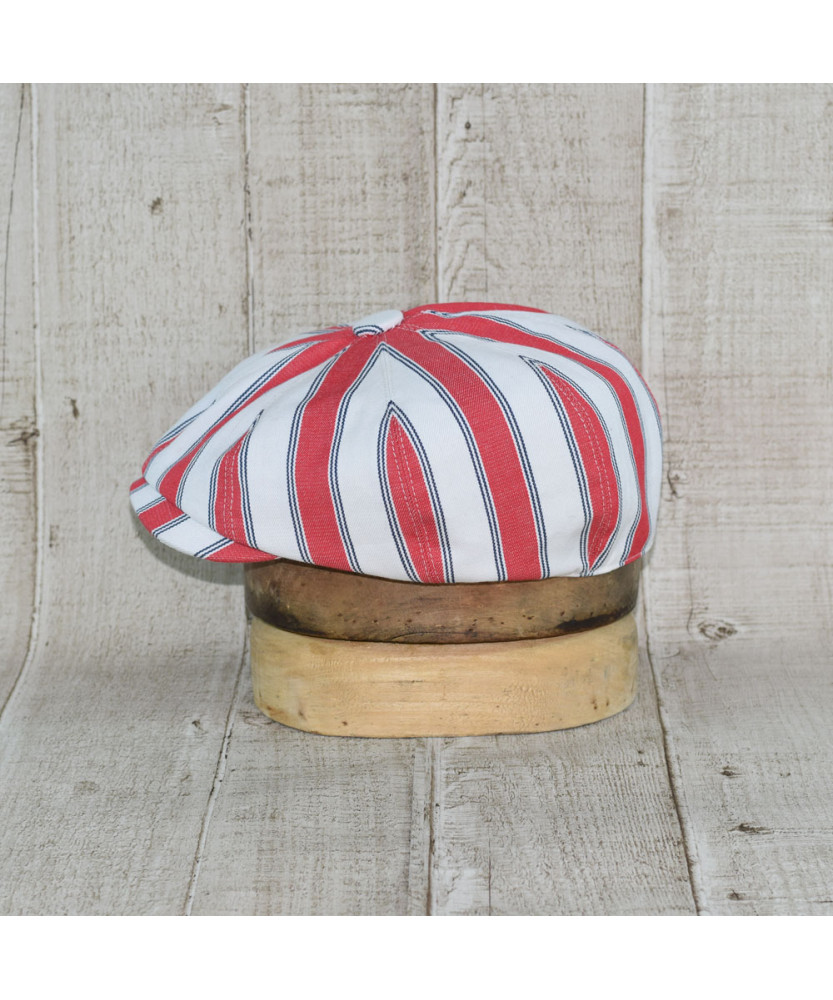Sapca Model Newsboy Peaky Blinders Doch Alb Cu Dungi Rosu Si Bleumarin